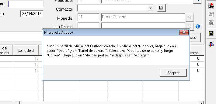 Generalmente los clientes le aparece este tipo de mensaje cuando intentan enviar correos a clientes, ya sean cotizaciones, notas de ventas, ordenes de compra, respuestas DTE y envío de DTE a cliente y arroja el error de la imagen siguiente: